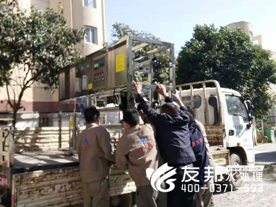 鄭州友邦正在裝車的是這套每小時出水2噸的工業純凈水設備,發往開封某電器有限公司。