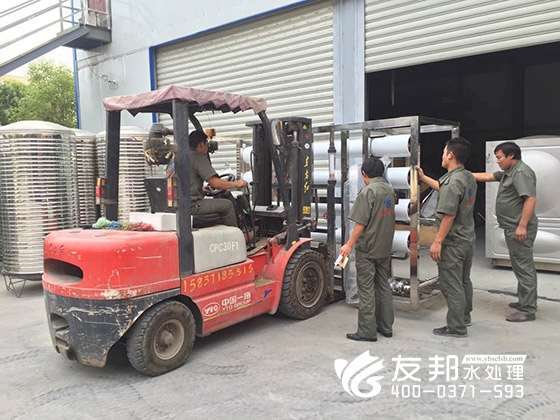 這套型號為YB-CJS-008的水處理設(shè)備正在裝車發(fā)貨,是發(fā)往新鄉(xiāng)某新材料有限公司。鄭州友邦在此次合作中為新鄉(xiāng)某新材料有限公司提供提供的8T/H純水系統(tǒng),完美的解決了對方在生產(chǎn)工藝用水方面的需求,成功幫助對方實(shí)現(xiàn)了新材料的生產(chǎn)。