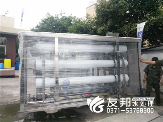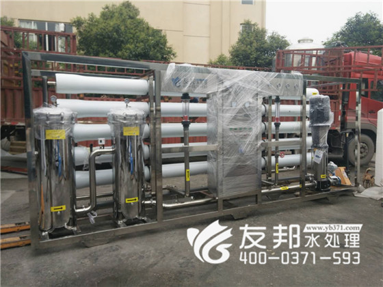河南友邦型號(hào)為YB-CJS-005的反滲透純凈水設(shè)備正在裝車發(fā)往山東濟(jì)南。 5噸每小時(shí)小型反滲透純凈水設(shè)備就是每小時(shí)大出水量是5噸,由于該設(shè)備的出水量比較小,一般應(yīng)用在