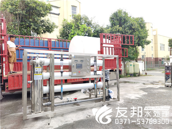 夏季,透藍的天空,懸著火球似的太陽,云彩好似被太陽燒化了,也消失得無影無蹤。鄭州友邦工作人員緊張有序的開始配貨中,此套2噸純凈水設備將要發往郟縣。歷經3個工作日到了交貨日,到了驗收環節,技術經理嚴格把控,確保設備穩定運行。