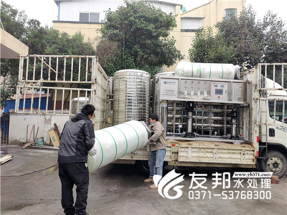 鄭州友邦小伙伴們正在忙碌的裝車發貨,整套系統從設計配置清單、簽訂訂單、到后期的安裝調試培訓指導。友邦工程師一對一全程指導。選擇鄭州友邦更讓你放心省心。接下來裝車發貨的是一套4噸反滲透設備。