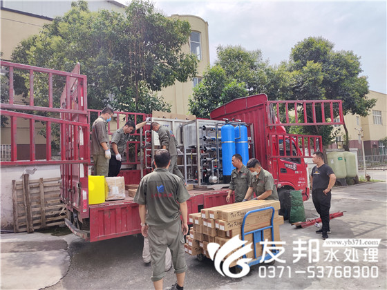 鄭州友邦小伙伴們正在忙碌的裝車發貨,整套系統從設計配置清單、簽訂訂單、到后期的安裝調試培訓指導。友邦工程師一對一全程指導。選擇鄭州友邦更讓你放心省心。接下來裝車發貨的是一套5噸反滲透設備發往溫州。