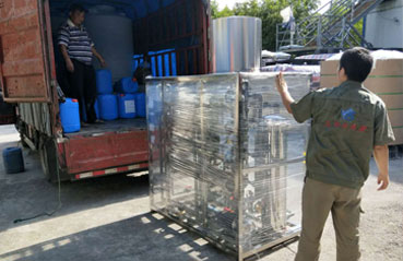 2018年8月6日河南地區(qū)1噸雙級(jí)全不銹鋼純凈水設(shè)備發(fā)貨現(xiàn)場
