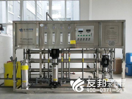 我們鄭州友邦為其定制純凈水設備由反滲透系統、反滲透裝置及其預處理和后處理三部分組成。反滲透系統的核心是反滲透裝置,預處理的目的是使原水達到反滲透膜組件的進水要求,是反滲透裝置能否長期穩定運行的前提。