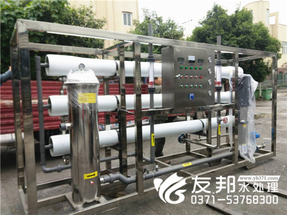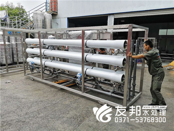 化工行業(yè)對水質(zhì)要求比較嚴格,使用純凈水設(shè)備也是越來越普遍,今天在鄭州友邦工廠里這套40噸的反滲透純凈水設(shè)備就是發(fā)往湖北用于化工行業(yè)生產(chǎn)用水。