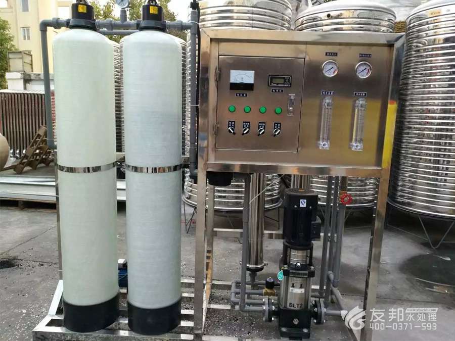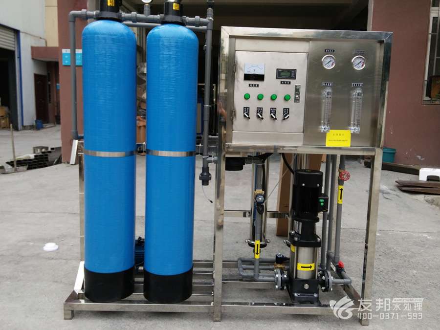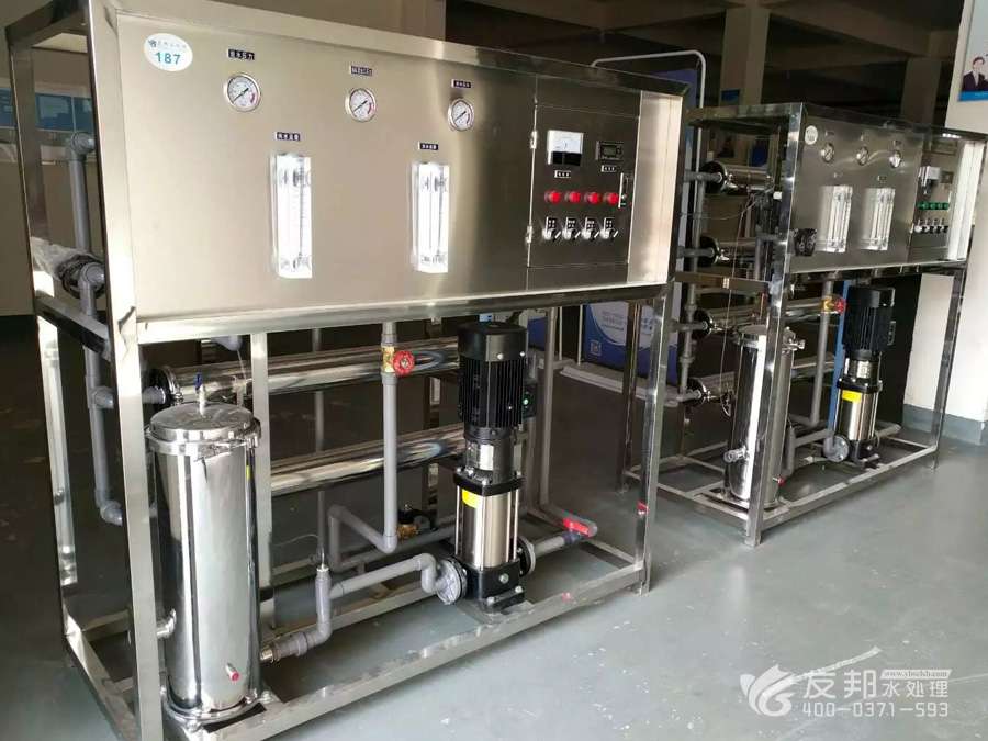 1、原水→原水加壓泵→多介質(zhì)過濾器→活性炭過濾器→阻垢裝置→精密過濾器→一級反滲透→中間水箱→中間水泵→陰陽離子交換器→純化水箱→純水泵→紫外線殺菌器→微孔過濾器→用水點
